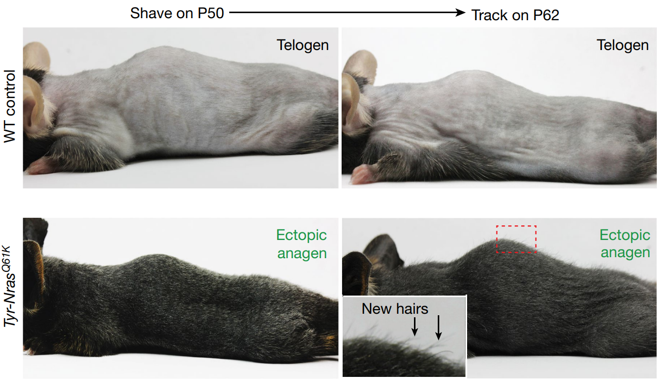 Figure 1: Effect of hair growth hyperactivation in mice.[4]Wang, X., Ramos, R., Phan, A,Q., Yamaga, L., Flesher, J.L., Jiang, S., Oh, J.W., Jin, S., Jahid, S., Kuan, C-H., Nguyen, T.K., Liang, H.Y., Shettigar, N, U., Hou, R., Tran, K.H., Nguyen, A., Vu, … Continue reading Figure used in line with Creative Commons.