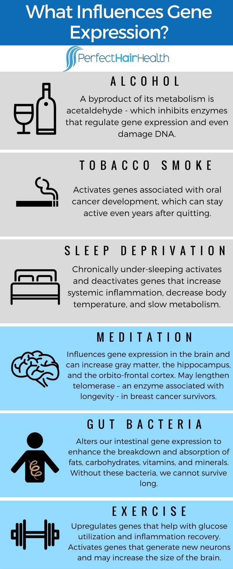 As we can see, the factors influencing our epigenome are extensive. Anything from the air we breathe to the foods we eat to the amount we sleep can change which genes our bodies upregulate and downregulate.