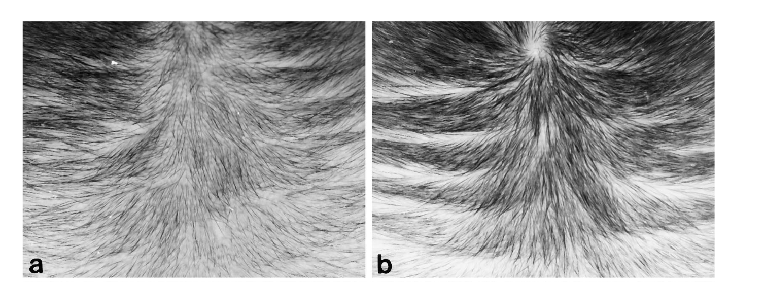 Figure 4. Photographs showing the effects of topical RU58841 on hair growth in the bald frontal scalps of the stumptailed macaques. Increased density and length of hairs were observed in a scalp at 4 months after treatment with 5% RU58841 (b) compared with the scalp at pretreatment time (a). Adapted from Figure 3:[15]Obana, N., Chang, C., Uno, H. (1997). Inhibition Of Hair Growth By Testosterone In The Presence Of Dermal Papilla Cells From The Frontal Bald Scalp Of The Postpubertal Stumptailed Macaque. … Continue reading