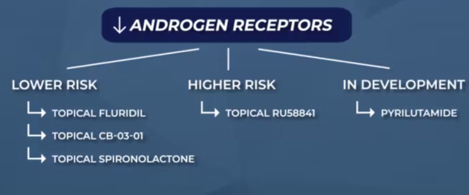 One particularly notable mechanistic detail from the macaque work is that RU58841 appeared to prevent testosterone-related androgen receptor effects in the dermal papilla. This suggests testosterone may also contribute to miniaturization through androgen receptor signaling, with the androgen receptor acting as a “lynchpin” for both testosterone and DHT in susceptible follicles.