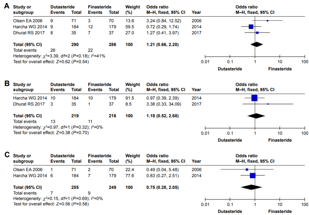 Abbreviation: M–H, Mantel–Haenszel.[6]Zhou, Z., Song, S., Gao, Z., Wu, J., Ma, J., Cui, Y. (2019). The efficacy and safety of dutasteride compared with finasteride in treating men with androgenetic alopecia: a systematic review and … Continue reading
