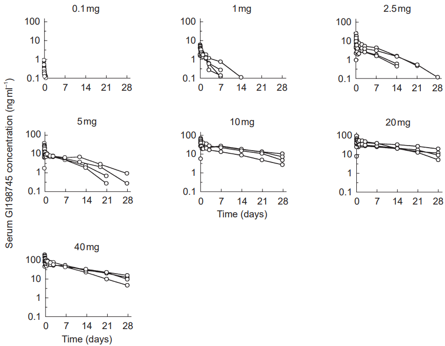 | Dose | Serum Concentration Duration (up to 1ng mL-1) |