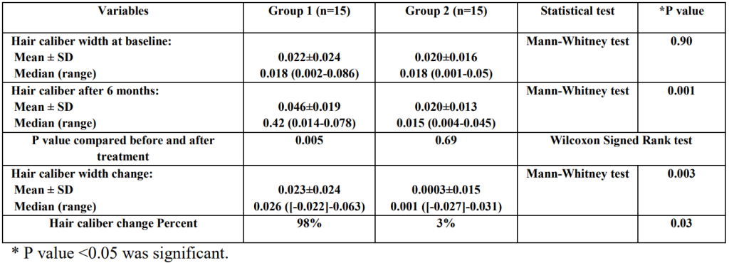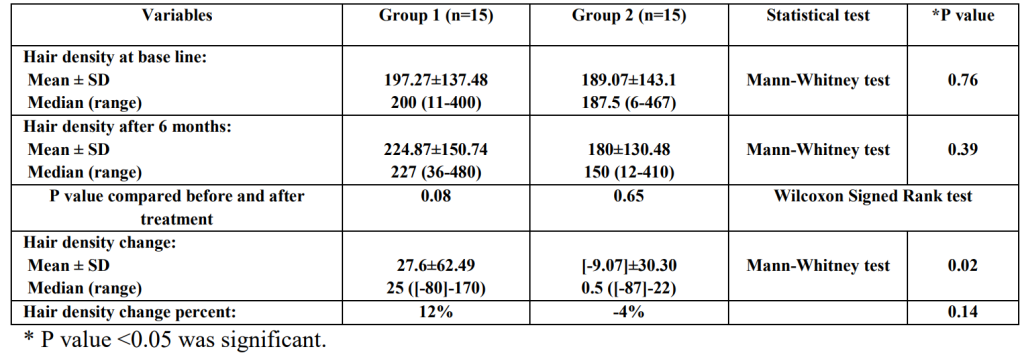 The investigation group also took serum DHT measurements before starting treatment, and one month after the final mesotherapy injection (according to personal email correspondences with the authors).