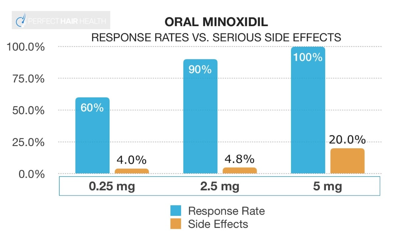 Oral minoxidil acts systemically (throughout the body), meaning that the side effects slightly differ from topical minoxidil, where its effects are largely contained to the scalp. Side effects include hypertrichosis, fluid retention, and heart palpitations. While increasing the dose of oral minoxidil increases the response rate, it also results in an increase in serious side effects.